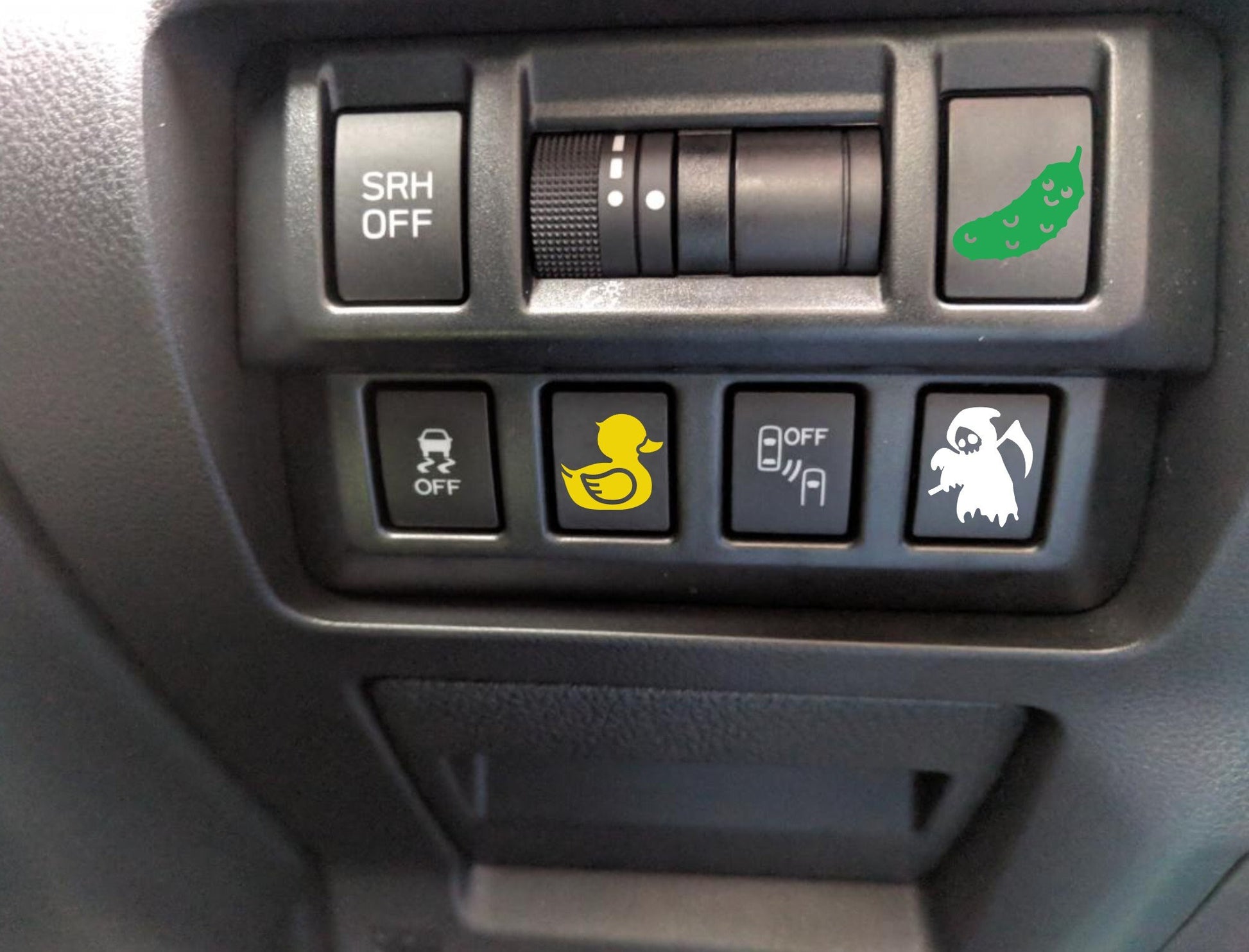 set of 4 blank button stickers, blank button decals, removable sticker for car buttons, dash button stickers duck cat grim reaper pickle